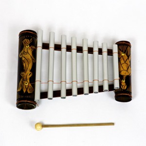 To complement the drums, there are pangi-fruit rattles, egg shakers and rainsticks, all of which can be shaken, 2 sets of clapsticks, along with a rindik and a karimba to add tonality to your playing.